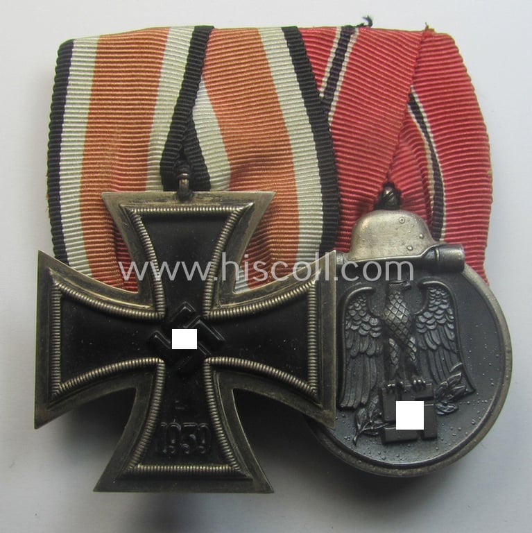 Minimally used example of a two-pieced WH (Heeres, LW o. KM etc.) medal-bar (ie. 'Orden- o. Doppelspange') showing resp. an: 'EKII. Kl.' and a medal: 'Winterschlacht im Osten 1941-42'