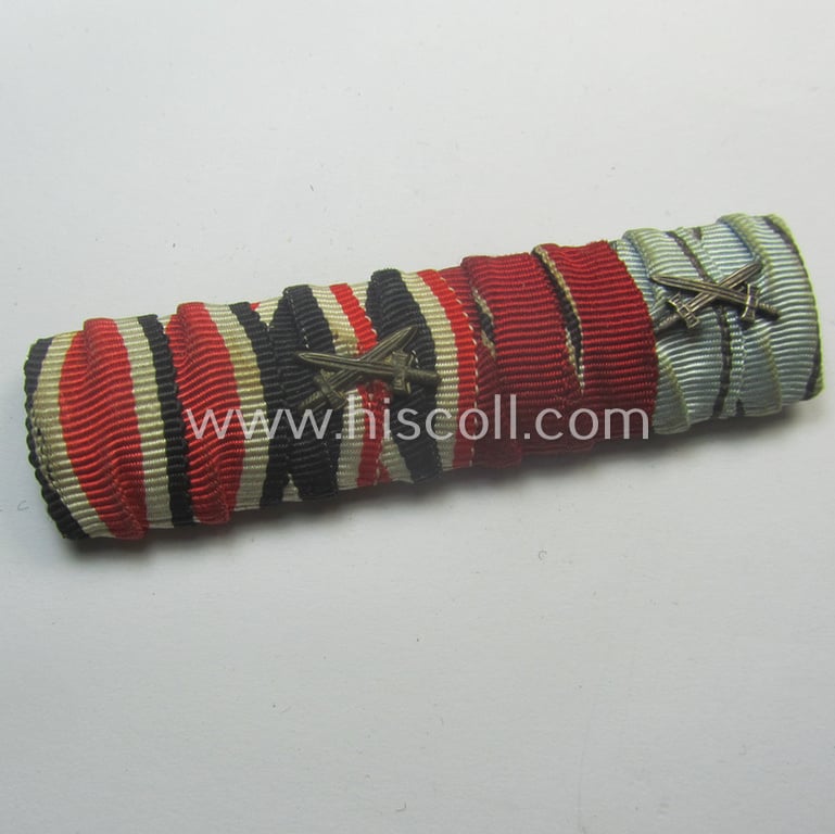 4-pieced, WH (Heeres, LW etc.) ribbon-bar (ie. 'Band- o. Feldspange') showing resp. the ribbons for an: 'EKII. Kl.', a: 'KvK II.Kl. m. Schwn.', an: 'Ost'-medal and a: Bulgarian medal: 'Za Chabrost' (with swords-device)