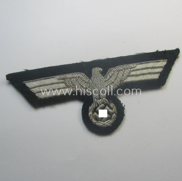 WH (Heeres) officers'-type, hand-embroidered breast-eagle (ie. 'Brustadler für Offiziere') as was executed in bright-silverish-coloured braid as was intended for usage on the various officers'-pattern tunics