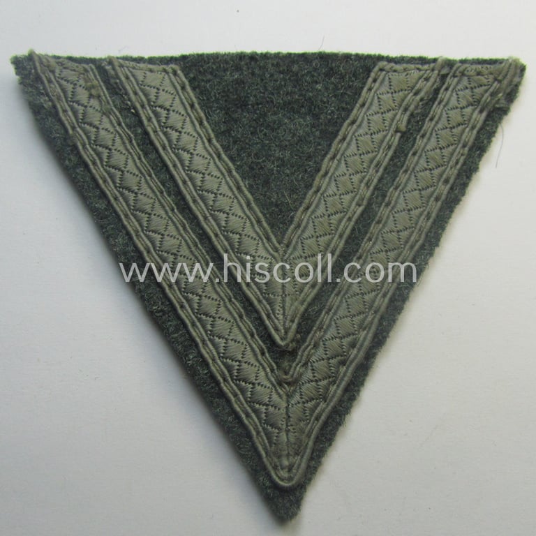 WH (Heeres) 'Armwinkel' (or: arm-chevron) as executed on typical field-grey-coloured wool as was specifically intended for usage by a soldier with the rank of: 'Obergefreiter'