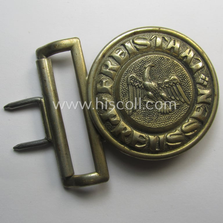 Neat, pre-Third-Reich-period- (ie. 'Freistaat Preussen'-related-) silverish-golden-toned, officers-type police- ie. 'Schutzpolizei' belt-buckle being a non-maker-marked example
