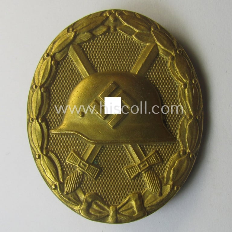 Luxuriously-styled - and I deem hardly used- nor worn! - 'Verwundeten-Abzeichen in Gold' being a typical non-maker-marked- and/or: 'Buntmetall'-based example as was presumably produced by the maker: 'Hauptmünzamt Wien'