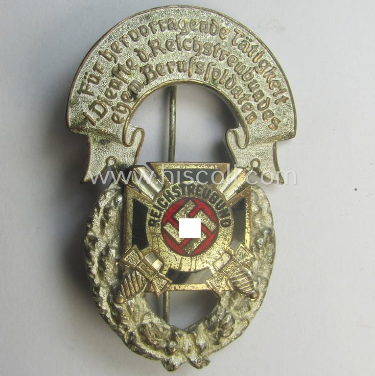 Never before seen honorary-membership lapel-pin (or: 'Mitglieds-Ehrenabzeichen') aka: 'Ehrennadel für hervorragende Tätigkeit i. Dienste d. Reichstreubundes ehem. Berufssoldaten (o. RTB)'