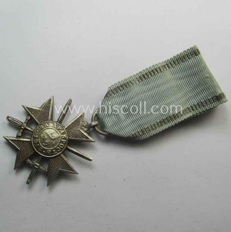 Silver-toned, Bulgarian WWII-period military-cross: 'For Bravery' (or: in Bulgarian- ie. Cyrilic language: 'Ordena Za Hrabrost') being an example of the 3rd Class with swords and that comes as issued and/or worn