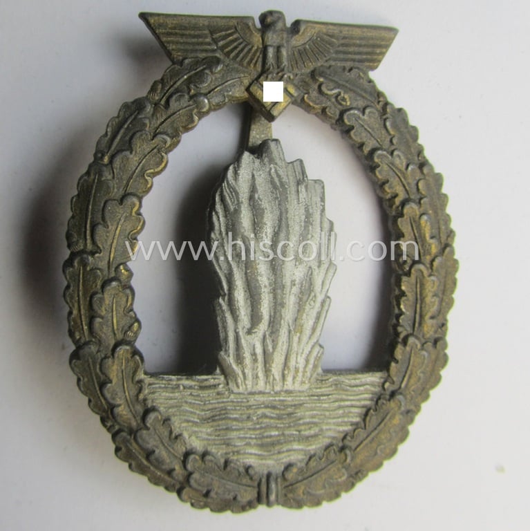 WH (Kriegsmarine) 'Kriegsabzeichen für Minensuch-, U-Boot-Jagd und Sicherungs-Verbände' being a detailed and clearly maker- (ie. 'R.K.') marked, 'Feinzink'-based example as was produced by the 'Rudolf Karneth'-company