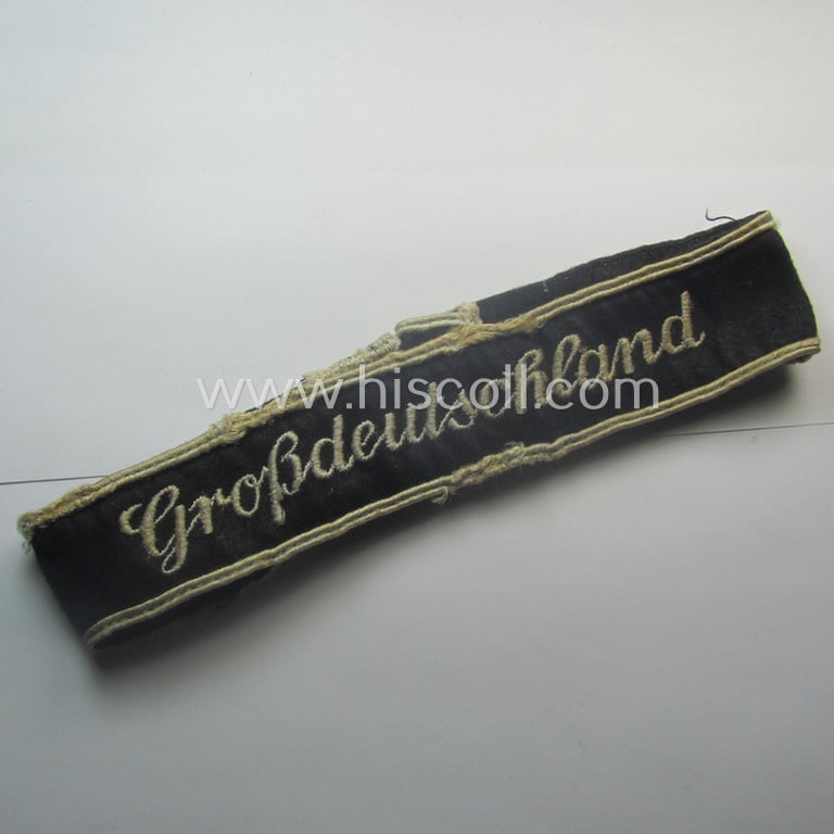 Truly used- and/or worn example of a WH (Heeres) cuff-title ie. armband (ie. 'Ärmelstreifen') entitled: 'Grossdeutschland' (being a neatly machine-embroidered example of the third pattern that was specifically intended for EM- ie. NCO-usage)