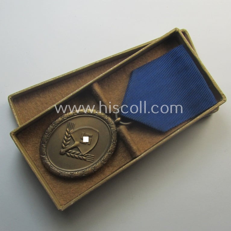RAD (ie .'Reichsarbeitsdienst') so-called: 'Dienstauszeichnung 4. Stufe für Männer' (as was intended for 4 years loyal-service) that comes stored in its (scarcely seen and equally very nicely preserved!) light-brown-coloured box ie. etui