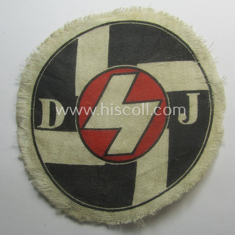 DJ- (ie. 'Deutsches Jungvolk in der HJ') related sport-shirt-patch as was executed in the 'printed'-pattern and that comes in a presumably used- (ie. once shirt-attached-), condition