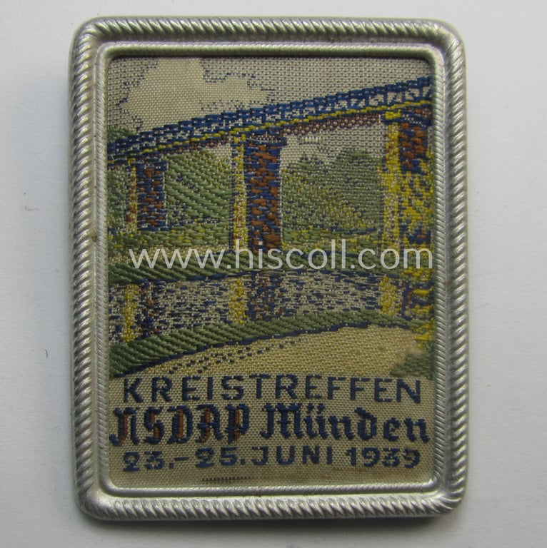 Commemorative - tin- (ie. linnen-) based 'tinnie' being a maker- (ie. 'Dr. R.Morisse'-) marked example depicting a viaduct and text that reads: 'Kreistreffen - NSDAP Minden - 23.-25. Juni 1939'