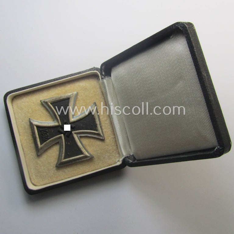 'Dual'-maker-marked, 'Eisernes Kreuz 1. Klasse' (ie. Iron Cross 1st class) being an (I deem) mid-war-period produced: 'L/52'- and/or: '20'- (ie. by 'C.F. Zimmermann'-marked-) example and that comes complete in its specific etui as issued