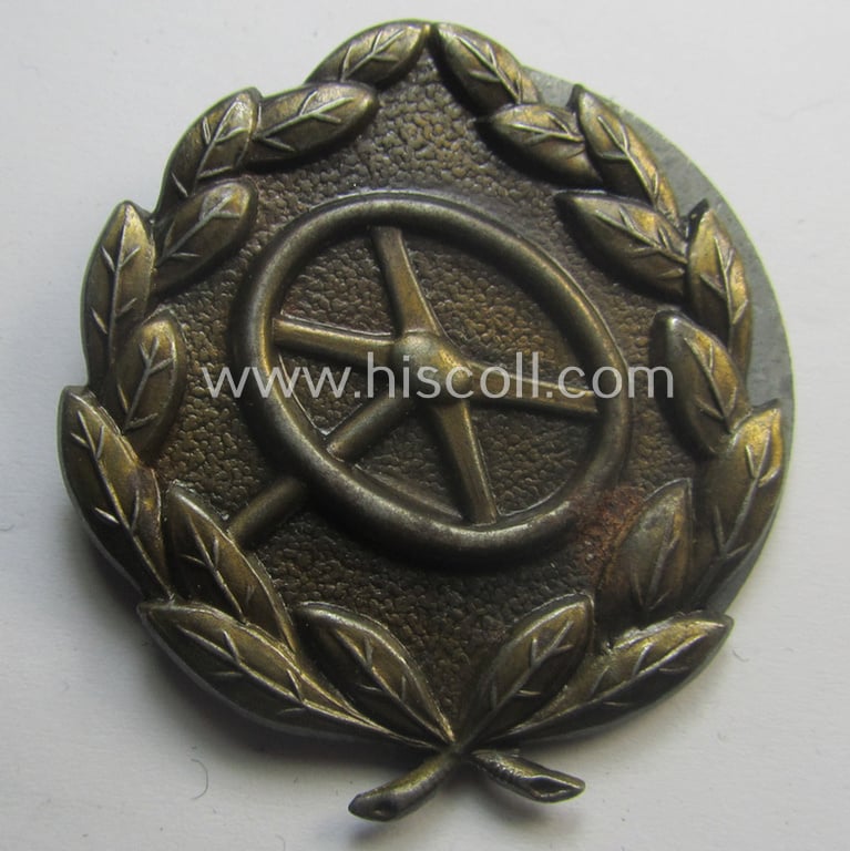 WH (Heeres o. Waffen-SS) so-called: 'Kraftfahrbewährungs-Abzeichen in Bronze' (or: bronze-class drivers'-proficiency-badge) that comes in a certainly issued- and/or moderately worn, condition
