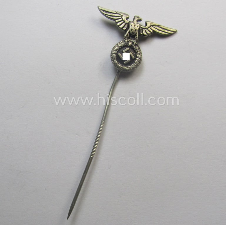 Early-pattern - silverish-coloured and truly very detailed! - so-called: 'N.S.D.A.P.'-supporter- (ie. membership-) lapel-pin (ie. 'tie'-pin) being a non-maker-marked example showing a pronounced (early pattern) 'Reichsadler'-device