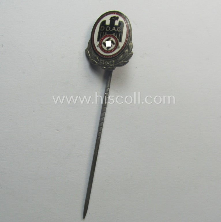 Neatly enamelled- (and multi-coloured!) 'Silberne Ehrennadel der Deutsche Automobil Club (D.D.A.C.) - 1934' being a detailed example that shows a makers- (ie. 'AD. Schwerdt'-) and/or: 'Ges. Gesch.'-patent-pending-designation