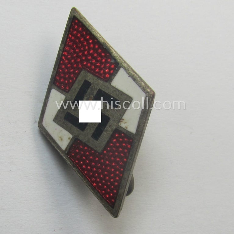HJ (ie. 'Hitlerjugend') enamelled lapel-pin (ie.: 'Raute') with a: 'RzM - M1/14'-makers'-designation