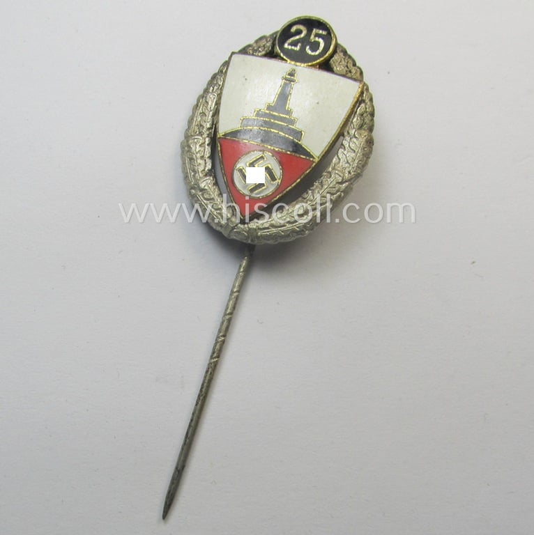 Honorary-membership lapel-pin (aka: 'Silberne Ehrennadel für 25 Jahre Mitgliedschaft im Deutscher Reichskriegerbund Kyffhäuser' (ie. 'D.R.K.B.') being a non-maker-marked example that bears a: 'Ges.Gesch.'-designation on its back