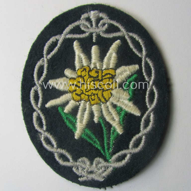 WH (Heeres) EM- (ie. NCO-) type: 'Edelweiss'-armpatch (being a typical machine-embroidered example)