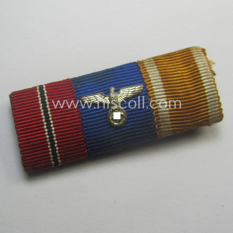 3-pieced, WH (Heeres o. KM) ribbon-bar (ie. 'Band- o. Feldspange') showing resp. the ribbons for an: 'Ost'-medal, a: WH (Heeres o. KM) D.A. der 4. St.' and a: 'Deutsches Schutzwall Ehrenzeichen' (aka: 'Westwall'-medal)
