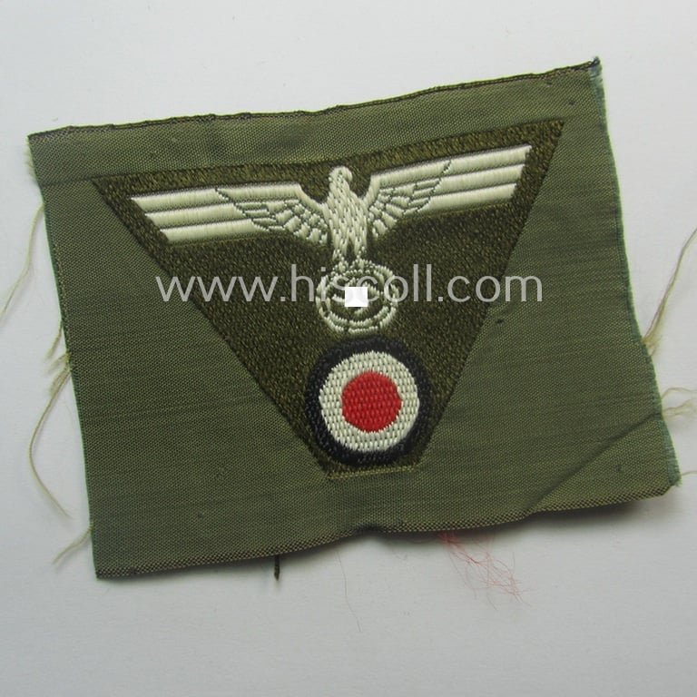 Attractive - and scarcely encountered! - OT- (ie. 'Organisation Todt'-) related, so-called: 'M43-pattern'-cap-trapezoid, as executed in the neat 'BeVo'-weave pattern on a greenish-brown-coloured background