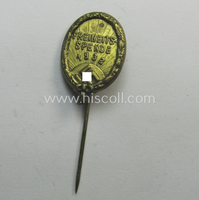 Interesting - and early-period! - N.S.D.A.P.-related 'tinnie' (ie. supporters'-lapel-pin) entitled: 'Freiheits-Spende 1932'