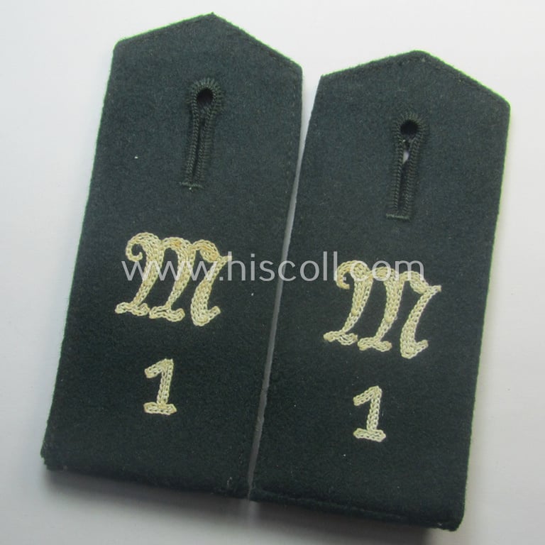 Fully matching pair of early-period (ie. 'M36- o. M40'-pattern and/or pointed-styled), WH (Heeres) 'cyphered' EM-type shoulderstraps as was intended for a: 'Soldat des Inf.-Maschinengewehr-Abts. 1'