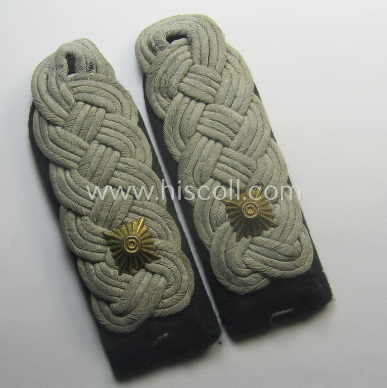 Pair of WH (Heeres) officers'-pattern shoulderboards as piped in the neat black- (ie. 'schwarzer'-) coloured branchcolour: 'Oberstleutnant u. Mitglied der Pionier-Trpn.'
