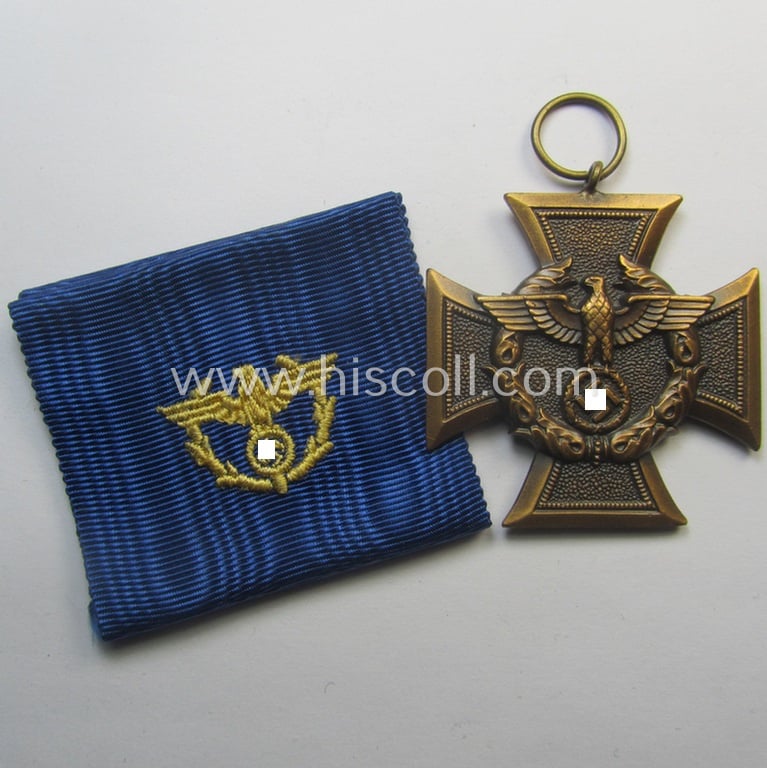 This is truly attractive - and actually scarcely encountered! - example of a typical reddish-bronze-toned- (and/or: typical 'Buntmetall'-based!) so-called: 'Zollgrenzschütz-Ehrenzeichen' (or: customs loyal-service medal) that came together with its full-length- (ie. somewhat broader-shaped, non-confectioned- and actually scarcely found!) ribbon (ie. 'Bandabschnitt') and that comes in an overall very nice- (and I deem issued- albeit never worn- ie. nor once mounted-), condition. The medal is just a tiny bit tarnished but retains a truly fantastic and detailed age-patina overall (it has most certainly never been cleaned nor polished). The award - which was as stated above never mounted - came together with its original, nicely folded and full-length (ie. approximately 14,5 cms. long and/or: 5,2 cms. wide-sized) cornflower-blue-coloured ribbon that shows an interwoven golden-yellow-coloured 'Zollgrenzschütz'-eagle-device (as can be seen on the pictures). The award originates from a private-household in Germany where it was recently found as such. Simply a very nicely preserved - and scarcely found! - 'Zollgrenzschütz-Ehrenzeichen'-medal-set that is - I deem - accordingly priced!