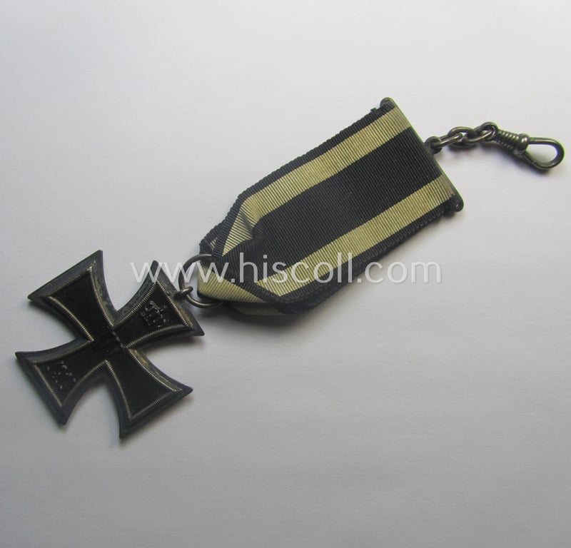 WWI-period: 'Eisernes Kreuz II. Klasse' being a typical maker- (ie. 'K.A.G.'-) marked example that comes mounted onto an unusually confectioned ribbon