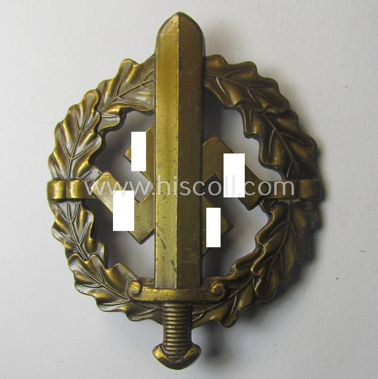 Early- (ie. pre-) war-period example of an: 'SA-Sportabzeichen in Bronze' being a detailed and/or neatly maker- (ie. 'Fechler - Bernsbach i. Sa.'-) marked example that is void of a bearers'-number
