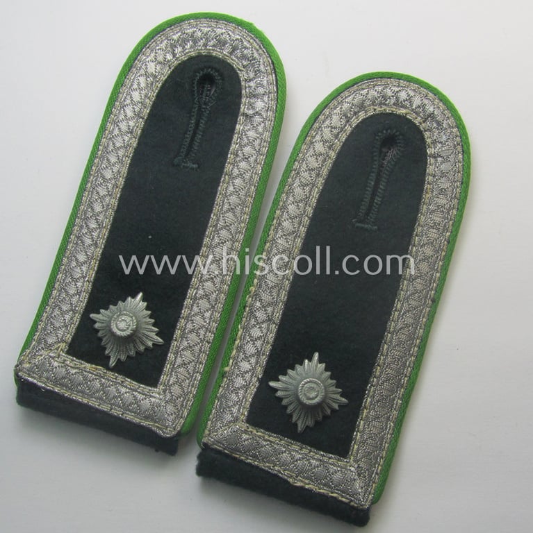 Pair of early- (ie. mid-) war-period so-called: 'M40'-pattern, WH (Heeres) NCO-type shoulderstraps as piped in the 'hellgrüner'-coloured branchcolour as intended for a: 'Feldwebel eines Panzer-Grenadier-Rgts. o. Abtlgs.'