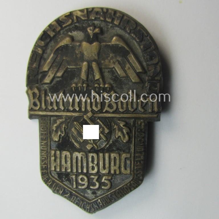 'Reichsnährstand'- (ie. 'RNSt.'-) related day-badge (ie. 'tinnie') as issued to commemorate a locally-held: 'RNSt.'-related gathering entitled: 'Eröffnungsfeier 2. Reichsnährstandsaustellung - 28.5.1935 - Hamburg'