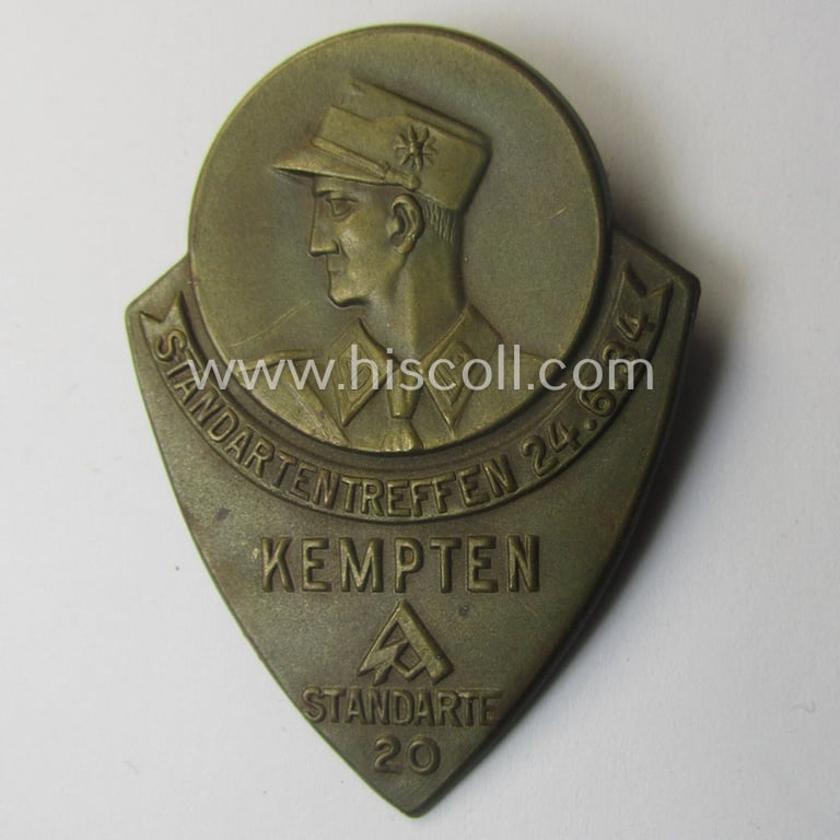 Commemorative - and fairly early-period! - golden-bronze-toned SA- (ie. 'Sturmabteilungen'-) related 'tinnie' entitled: 'Standartentreffen - SA-Standarte 20 - Kempten - 24.6.34'