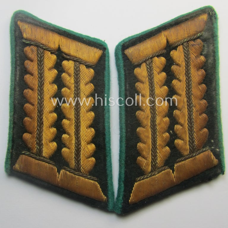 Superb - and fully matching and/or scarcely encountered! - pair of WH (Heeres) hand-embroidered, high-ranked officers'-type collar-patches as was intended for - and with certainty worn by! - a: 'Wehrmachtsbeamte des höheren Dienstes'