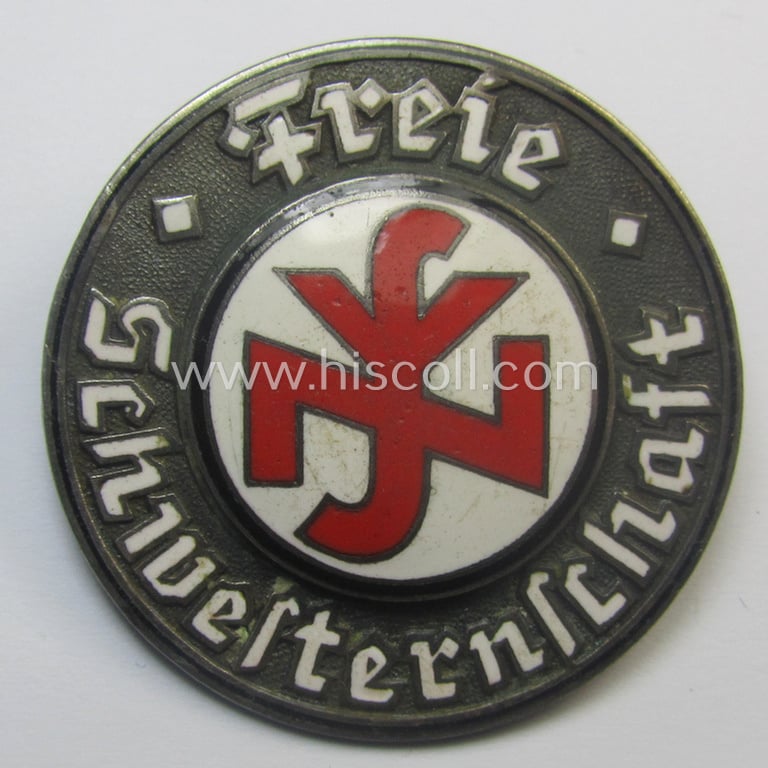 DRK- (ie. 'Deutsches Rotes Kreuz'- or German Red Cross) related so-called: nurses'-brooch entitled: 'Freie Schwesternschaft' (being a moderately used-, multi-coloured-enamelled albeit non-maker-marked example)