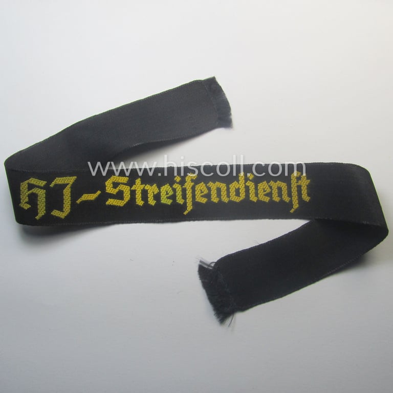 Superb example of the - actually quite scarcely encountered! - HJ ('Hitlerjugend') armband ie. cuff-title, entitled: 'HJ-Streifendienst' (being a full-length example that was carefully tunic- and/or shirt-removed)
