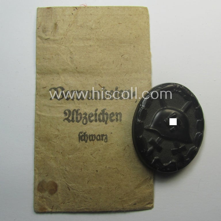 'Verwundeten-Abzeichen in Schwarz' being a maker- (ie. '4'-) marked example by the: 'Steinhauer & Lück'-company that came stored in its (scarcely seen!) period pouch