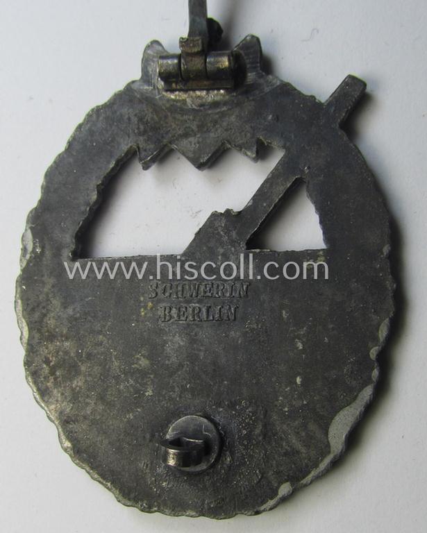 WH (Kriegsmarine) 'Marine-Artillerie-Abzeichen' being a clearly maker- (ie. 'Schwerin - Berlin'-) marked and/or zinc- (ie. 'Feinzink'-) based example