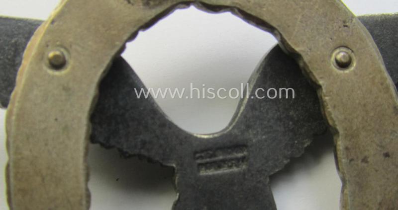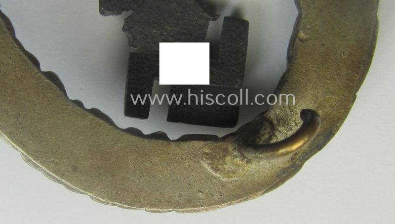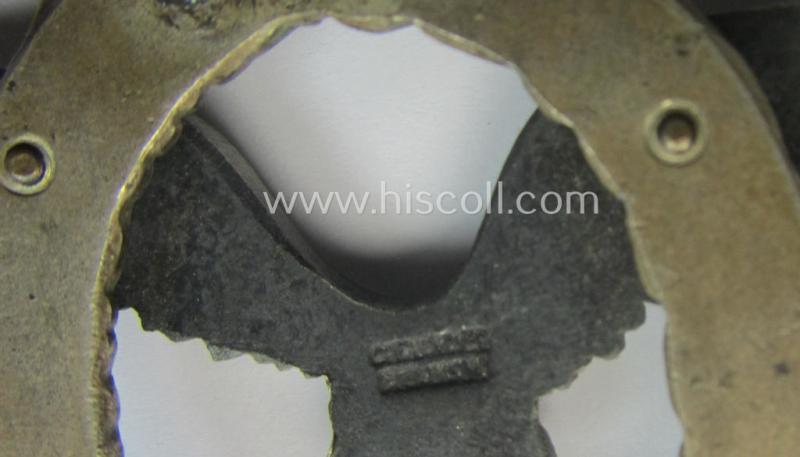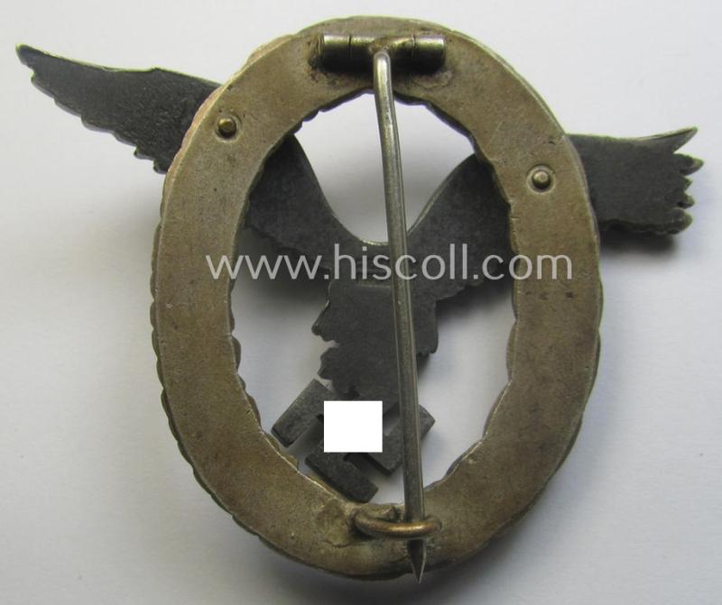 This is a truly attractive and/or very pronounced example of an early- (ie. pre-) war-period- and/or: 'Buntmetall'- (ie. 'Tombak'-) based so-called: WH (Luftwaffe) 'Flugzeugführerabzeichen' (or: pilots'-war-badge) being a clearly maker- (ie. 'C.E. Juncker'-) marked example of the desirable 'J2'-pattern and that comes in an overall very nice- (albeit moderately used and/or truly worn-), condition. The neat piece has simply extraordinary detail and truly retains most of its original silverish-toned- (ie. blackened) finish (as can be seen on the pictures). The war-badge is as stated above moderately worn but truly shows great character and/or fine, pronounced detail as to be expected by such a 'high-quality-produced'-piece. The badge is naturally in great shape ie. order: the pin (set-up) and both copper-toned rivets come in a very fine (and/or fully undamaged nor repaired-) order (as can be seen on the pictures). The neat badge - was recently uncovered at a private-household in Germany and came as stored for decades. The badge has most certainly never been cleaned nor polished and has a neat and/or slightly tarnished 'age-patina' (as can be seen on the pictures): it was never before part of any collection. The badge has naturally all the characteristics of a so-called: 'J2-pattern'-pilots'-war-badge. Simply a very attractive - rarely seen and truly high-quality-produced! - Luftwaffe 'Flugzeugführerabzeichen' by the desirable 'C.E. Juncker'-company that is I deem priced according to its comparative rarity and/or desirability!