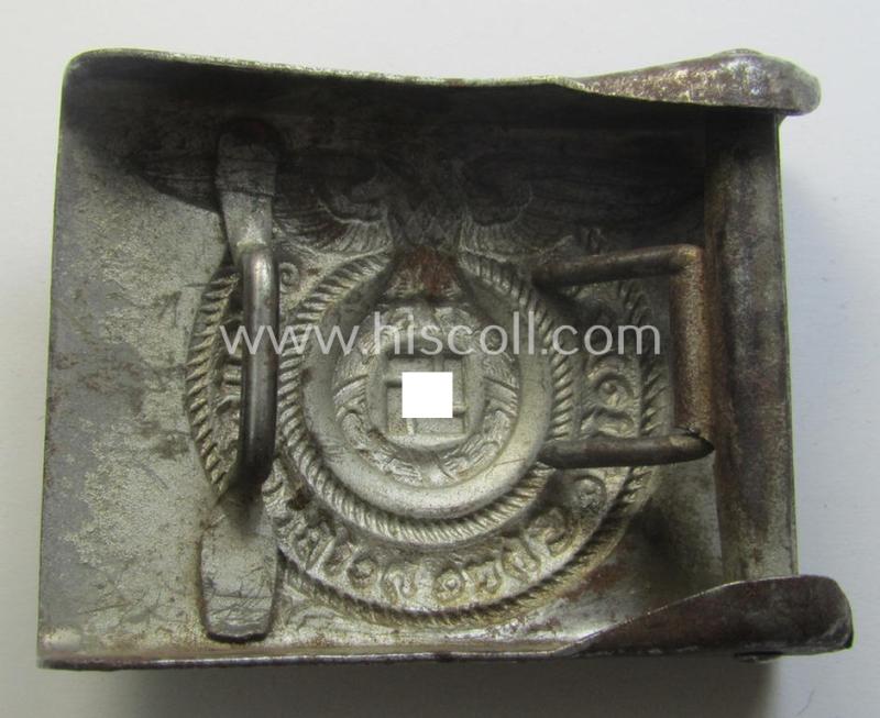 Waffen-SS, EM- (ie. NCO-) type belt-buckle (being a typical, unmarked and typical steel-based: 'Overhoff & Cie'-example) that comes in a surely issued- and/or moderately used- ie. worn, condition
