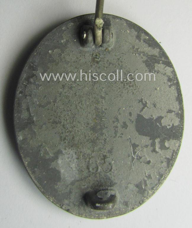 Moderately used- and/or worn 'Verwundeten-Abzeichen in Silber' being a typical maker- (ie. '65'-) marked- and/or: 'Feinzink'-based example by the maker: 'Klein & Quenzer'