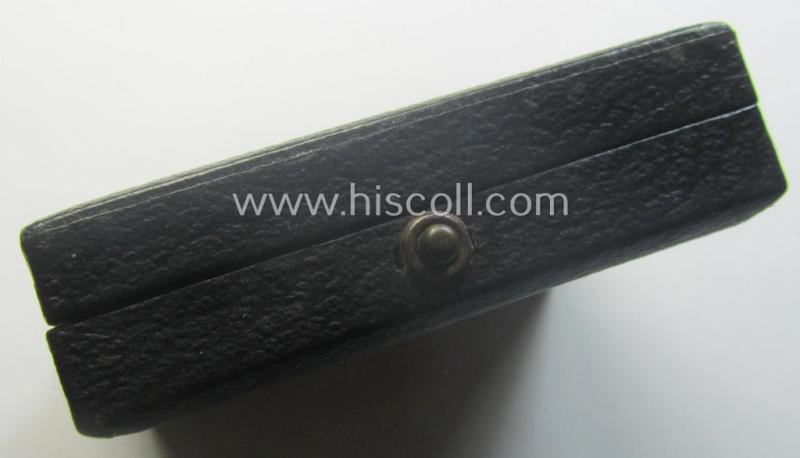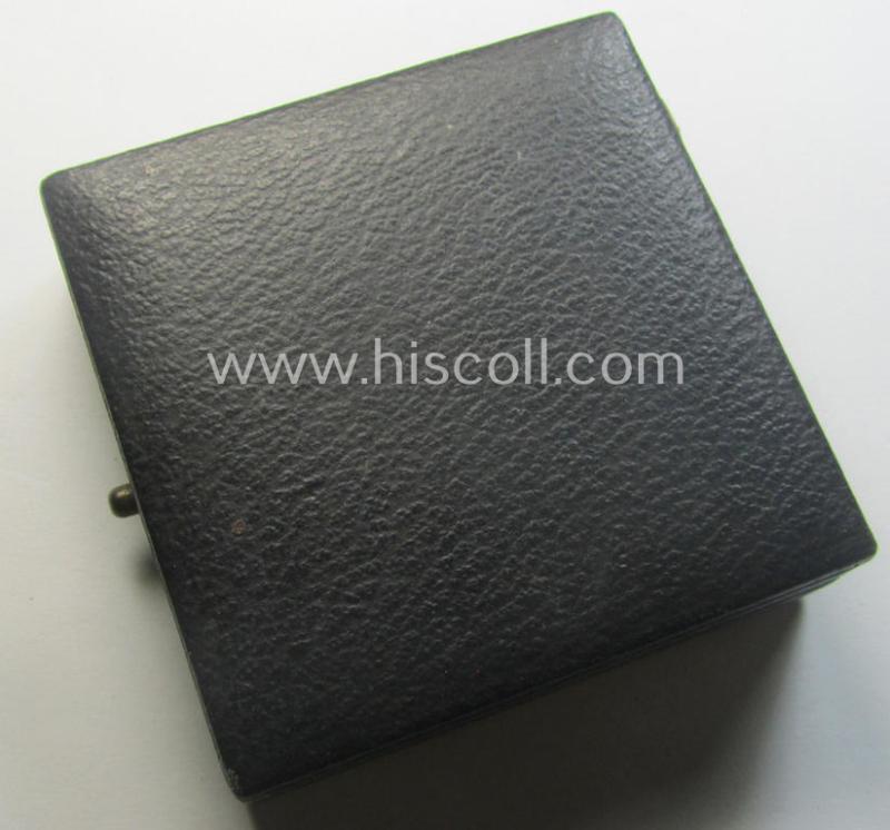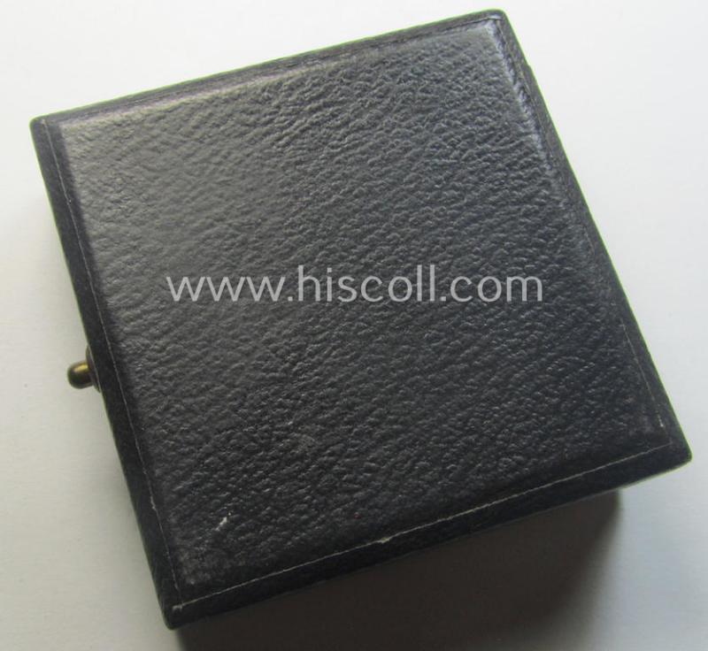 The truly attractive - and luxuriously-styled! - golden-class wound-badge (or: 'Verwundeten-Abzeichen in Gold') is executed in neat and/or fairly shiny, so-called: 'Buntmetall' and shows only moderate usage and/or minimal wear (as can be clearly seen on the pictures). The attractivce wound-badge comes naturally mounted onto its fully functional and typically tin-shaped pin and has a totally unaltered (and naturally fully functional) catch ie. catch-set-up. The wound-badge has most certainly never cleaned and retains most (ie. almost all!) of its golden-toned (ie. 'feuervergoldeter') finish. It only shows some minimal tarnish (and has never been cleaned nor polished). It is - as stated above - showing a clearly present '30' -makers'-designation (something that is more often but not always the case). The black-coloured- (simulated leather-based- and/or: partly wooden-based) etui - comes also in an overall very nice, albeit moderately used, condition (it is just somewhat dusty ie. dirty simply caused by years of storage but totally void of any real damage or alike). The etui has a beige-coloured (simulated 'velvet') interior: this inlay shows a clear imprint of the wound-badge (that was most certainly stored in this manner for decades). This attractive WB was recently found as such at a private-household in Germany and can be attributed to the Austrian maker (ie. 'Hersteller') named: 'Hauptmünzamt' as was based in the town on Wien ie. Vienna (as can be seen on the pictures). Simply a very attractive and with certainty desirable, golden-class WB-set that is nowadays most certainly not that easily encountered!