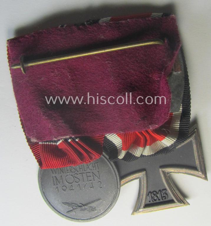 Minimally used example of a two-pieced WH (Heeres, LW o. KM etc.) medal-bar (ie. 'Orden- o. Doppelspange') showing resp. an: 'EKII. Kl.' and a medal: 'Winterschlacht im Osten 1941-42'