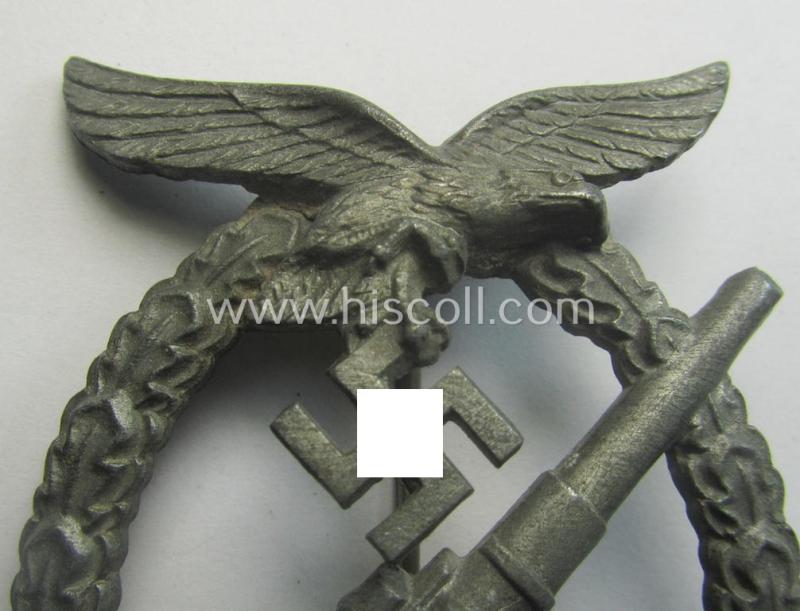 Later-war period- and/or typical 'Feinzink'-based- example of a maker- (ie. 'GB'-) marked, WH (Luftwaffe) 'Flakkampfabzeichen' (or: airforce anti-aircraft badge) being a detailed example as was produced by the: 'Gustav Brehmer'-company
