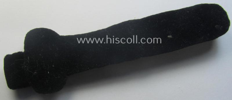 This is an attractive - regrettably single but nevertheless scarcely found! - specific FAD (ie. 'Freiwilligen Arbeitsdienst') officers'-type shoulderboard (being of the pattern as was used in the period between 1932-36) as was intended for a: 'FAD-Oberfeldmeister' and that comes in an overall nice- (ie. moderately used- and worn and/or clearly carefully tunic-removed-), condition. The neat (typically thin-shaped) board measures approx. 12,5 cms. in length and show a single (horizontally-mounted) 'loop' attached: it is executed in the typical, black-and-silverish-toned 'braid' and comes mounted onto a: 'velvet-like' woolen-based background (as can be seen on the pictures). The board comes in an overall nice- (ie. fully 'text-book') condition and still shows some of the thread- ie. stitching-remains with which it was once tunic-attached. These scarcely found FAD-officers'-type shoulderboards (the FAD was in fact the predecessor of the RAD or: 'Reichsarbeitsdienst') were used by the officers serving within this organisation. This example originates from a larger-sized grouping of RAD- and/or FAD-insignia that was recently found at a private-household in Germany and that I acquired for the web-site. Simply a great occasion to acquire a desirable (and truly hard to find!) 'Freiwilligen Arbeitsdienst'-related officers'-type 'FAD-Schulterstück' for a justified price!
