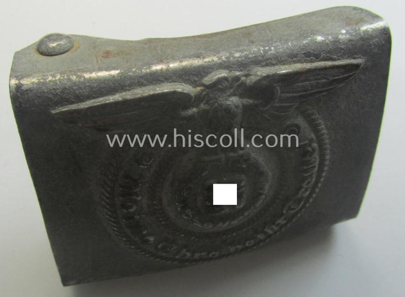 Waffen-SS, EM- (ie. NCO-) type belt-buckle (being a typical, unmarked and typical steel-based: 'Overhoff & Cie'-example) that comes in a surely issued- and/or moderately used- ie. worn, condition