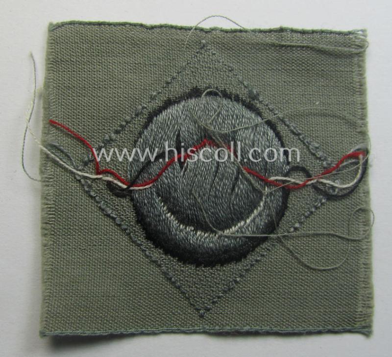 The attractive - and truly rarely found! - WH (Heeres) enlisted-mens'- (ie. NCO-) type cocarde (ie. 'Kokarde für Schiffchenmütze') on offer here was simply never used nor worn and comes in a non-folded- (nor confectioned), condition: it can easily be graded 'virtually mint-/unissued' but nevertheless shows some minimal age ie. staining (simply caused by decades of storage only). These early- ie. pre-war-type, WH (Heeres) 'standard'-pattern side-cap-cocardes can easily be graded as one of the more difficult to obtain cocardes of the period. I know that my asking-price is rather high but these neat (greyish-like- albeit field-grey-coloured) WH (Heeres) replacement-cocardes are hardly ever offered for sale. Simply a neat replacement-item that is very hard to find if needed!