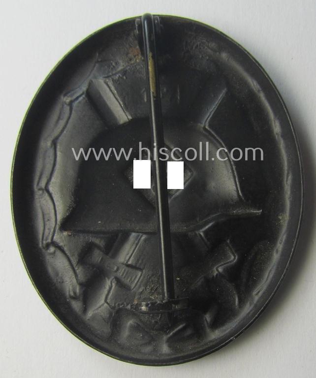 Nicely maker- (ie. '107-) marked example of a black-class wound-badge (or: 'Verwundeten-Abzeichen in Schwarz') being an example that was produced by the maker (ie. 'Hersteller') named: 'Carl Wild'