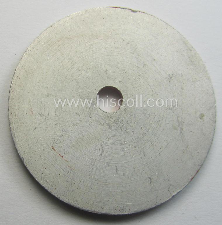 This is an attractive - and fairly unusually seen! - WWII- (ie. TR-) period, so-called: 'license-plate-plaque' being a (typical) bright-red-coloured- and/or aluminium-based example that shows a detailed 'Reichseagle'-device surrounded by the superimposed text that simply reads: 'Polizeidirektion Offenbach a. M.' and that comes in a wonderful (I deem just moderately used- ie. once plate-attached-), condition. The plaque - which has a fully preserved red-painted surface - has an approximate diameter of 4,7 cms. and shows a centrally-placed hole (intended for affixing it onto a license-plate). Simply a nice - and fairly unsually seen - TR-related item that is with certainty accordingly priced!