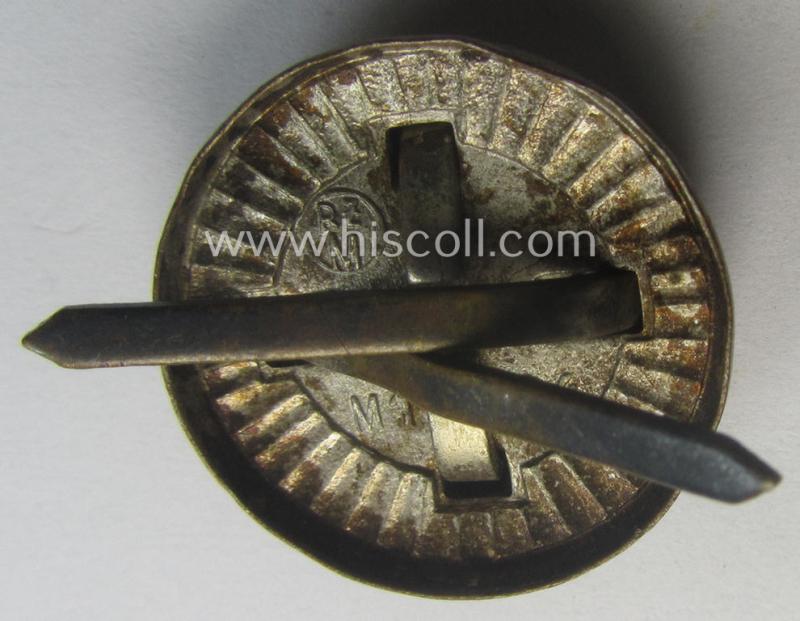 Political-style- (ie. N.S.D.A.P.-related-) multi-pieced visor- (ie. 'Schirmmützen'-) cap-cocarde which is neatly: 'RzM' and/or 'M1/34' marked on its back