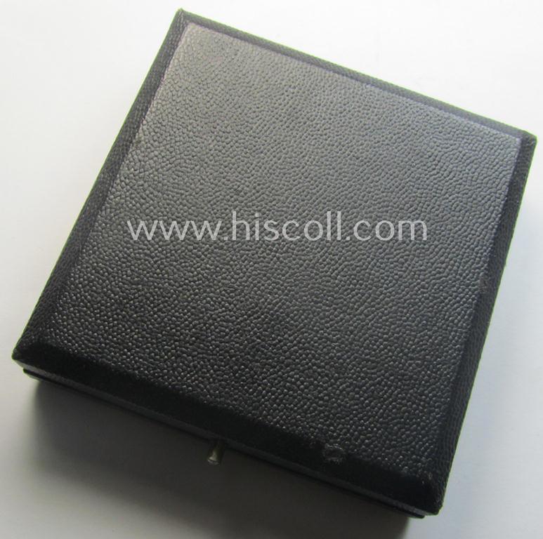 This is an attractive - and with certainty not that often encountered! - typical greyish-silverish-toned (and zinc- ie. 'Feinzink'-based) so-called: 'Reichsnährstand'- (ie. 'RNSt.'-) related, commemorative-award-plaque (ie. 'nichttragbare Auszeichnungs-Plakette') entitled: '4. Reichsnährstands-Austellung - Blut und Boden - München 1937' (and on its back mentioning the class being: 'ungesalzene Butter') and that comes stored in its period, black-coloured period-etui as issued and kept ie. stored as such for decades. The table-medal (that was apparently awarded for outstanding achievement in a by the 'Reichsnährstand'-organised farmers'-contest held in the year 1937) comes stored in its period etui (ie. 'Verleihungsetui'). The neat - medium- ie. larger-sized- and regular-weight-piece that shows a 'Reichsadler' and 'Reichsnährstand'-device on its front - has an approximate diameter of 6 cms. and has very pronounced detail as to be expected. It was most certainly never cleaned nor polished and has maintained a neat (somewhat matted- ie. frosted-) greyish-silver-toned age-patina (as can be seen on the pictures). The black-coloured (and square-shaped) etui - comes in an equally nicely preserved condition and shows a (fully preserved) silver-toned 'RNSt.'-logo on its top (as can be seen on the pictures). The piece originates from a private-household in Germany where it was recently uncovered as issued and stored for decades. Simply an attractive, complete - and with certainty unusually encountered! - 'Reichsnährstand'-related table-medal ie. 'Erinnerungs- o. nichttragbare Auszeichnungs-Plakette' that is with certainty accordingly priced!
